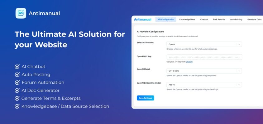Boost support and SEO with an AI chatbot trained on your WordPress content—powered by Antimanul.