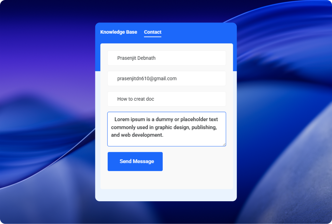 Provide comprehensive support with two powerful channels within a single interface. Users can access the Knowledge Base for self-service inquiries or utilize the integrated Contact form to submit messages to your specialized support team for personalized guidance.