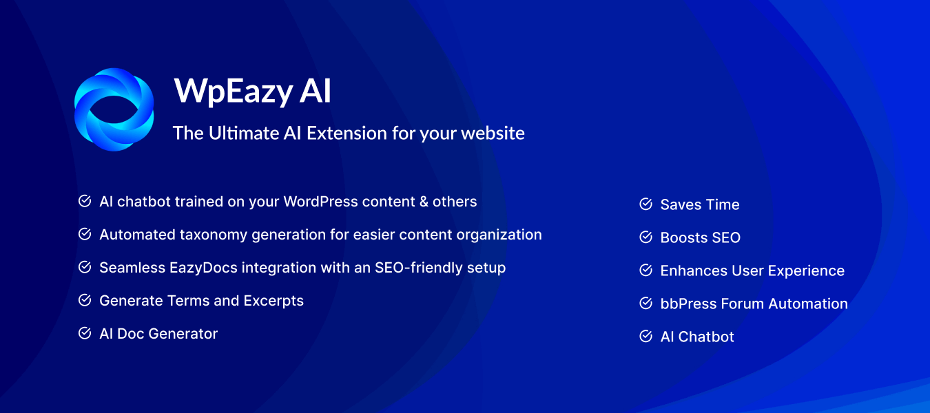 WpEazy AI is a powerful and seamless AI companion for WordPress. WpEazy AI is now a fully standalone plugin that works with any WordPress theme or plugin, giving you maximum flexibility.