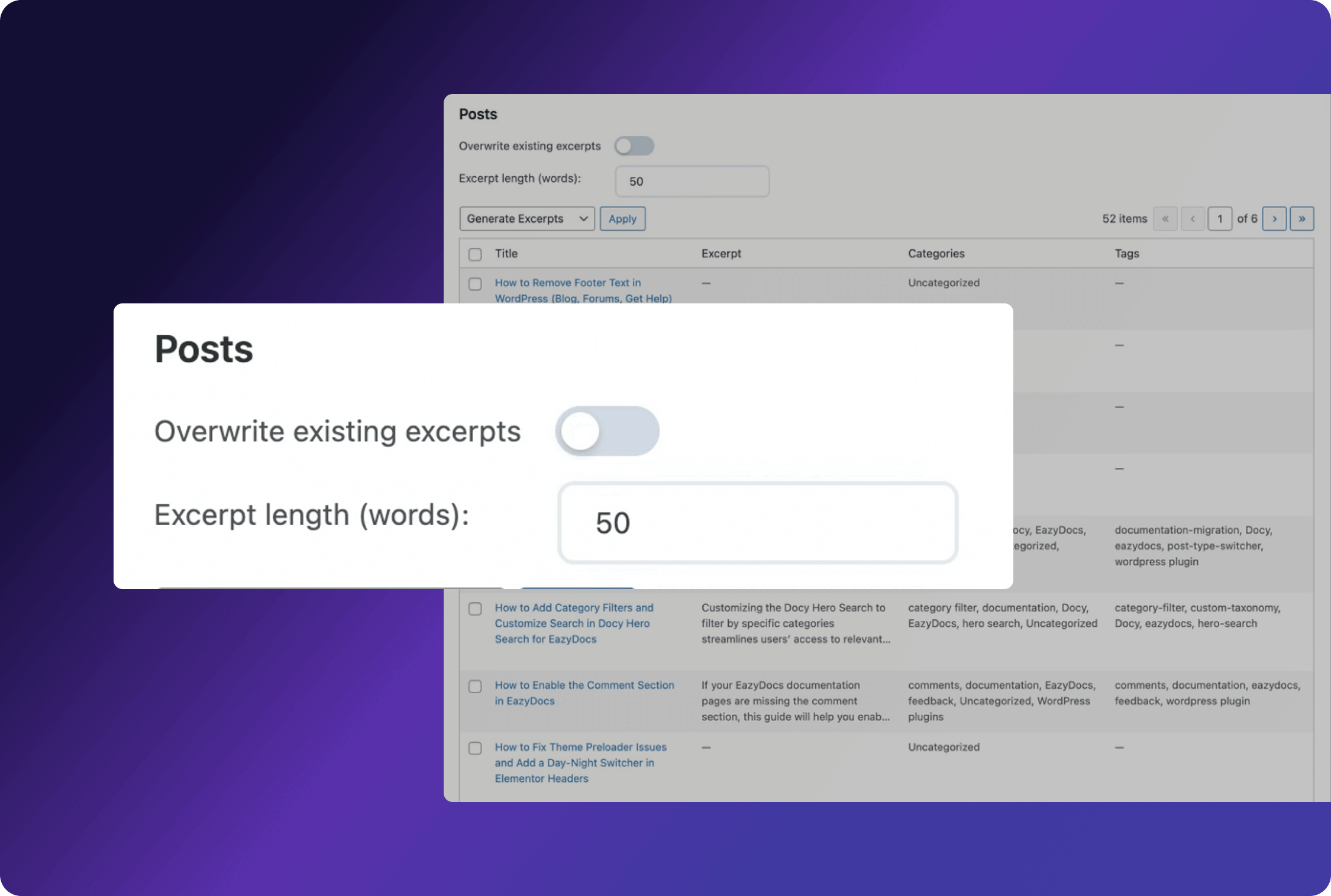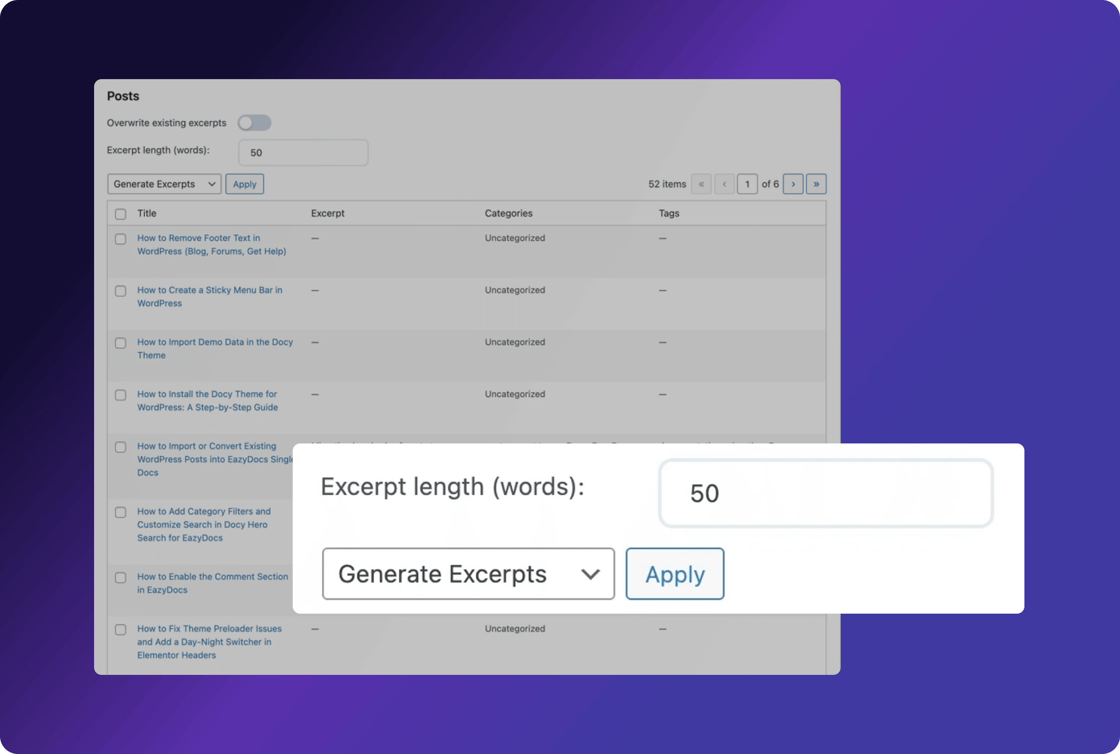 Generate perfect post excerpts instantly. Define word length, achieve site-wide consistency, and effortlessly overwrite old summaries. Save time now.